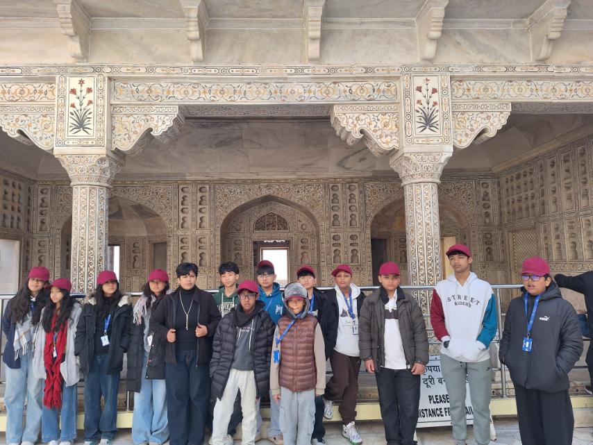 Grade VII has been working on India Studies, and as part of their learning, they travelled to major cities such as Delhi, Agra, Jaipur, and other places of historical importance across India. During the trip, they explored magnificent forts, visited the Taj Mahal, and observed several early Indian monuments that reflect the richness of India’s past. This travel experience has given them a deeper understanding of India’s history, architecture, and cultural heritage. It also helped students connect classroom learning with real-life experiences by seeing important landmarks up close.